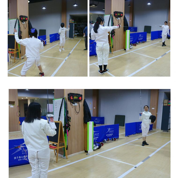 在簡(jiǎn)單的熱身之后,就進(jìn)入了大家格外盼望的比拼環(huán)節。本次實(shí)戰采用重劍的比賽規則,大家自由組隊,2人一組,總共5局,比分高者為勝。致敬動(dòng)作后,對決正式開(kāi)始,第一組選手為大家開(kāi)了個(gè)好頭:時(shí)而主動(dòng)出擊,時(shí)而積極防守,雙方都在及時(shí)變化作戰策略,場(chǎng)面十分火熱。觀(guān)戰的選手們看得不亦樂(lè )乎,都躍躍欲試。接下來(lái)的各個(gè)選手都竭盡所能,有的勇猛出擊,有的善于防守……大家都表示十分享受擊劍過(guò)程,并從中體會(huì )到了挑戰自我和團隊友誼的意義。