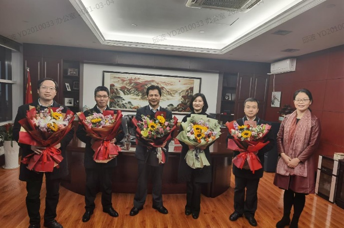 2月1日下午,鄞州區總工會(huì )副主席姚燕君、范海鋒、周迎春、胡美星、徐濱,工會(huì )干部李天波等領(lǐng)導一行走訪(fǎng)中科遠東并慰問(wèn)企業(yè)的勞模、工匠。中科遠東董事長(cháng)項文裕熱情接待了區總工會(huì )領(lǐng)導一行。